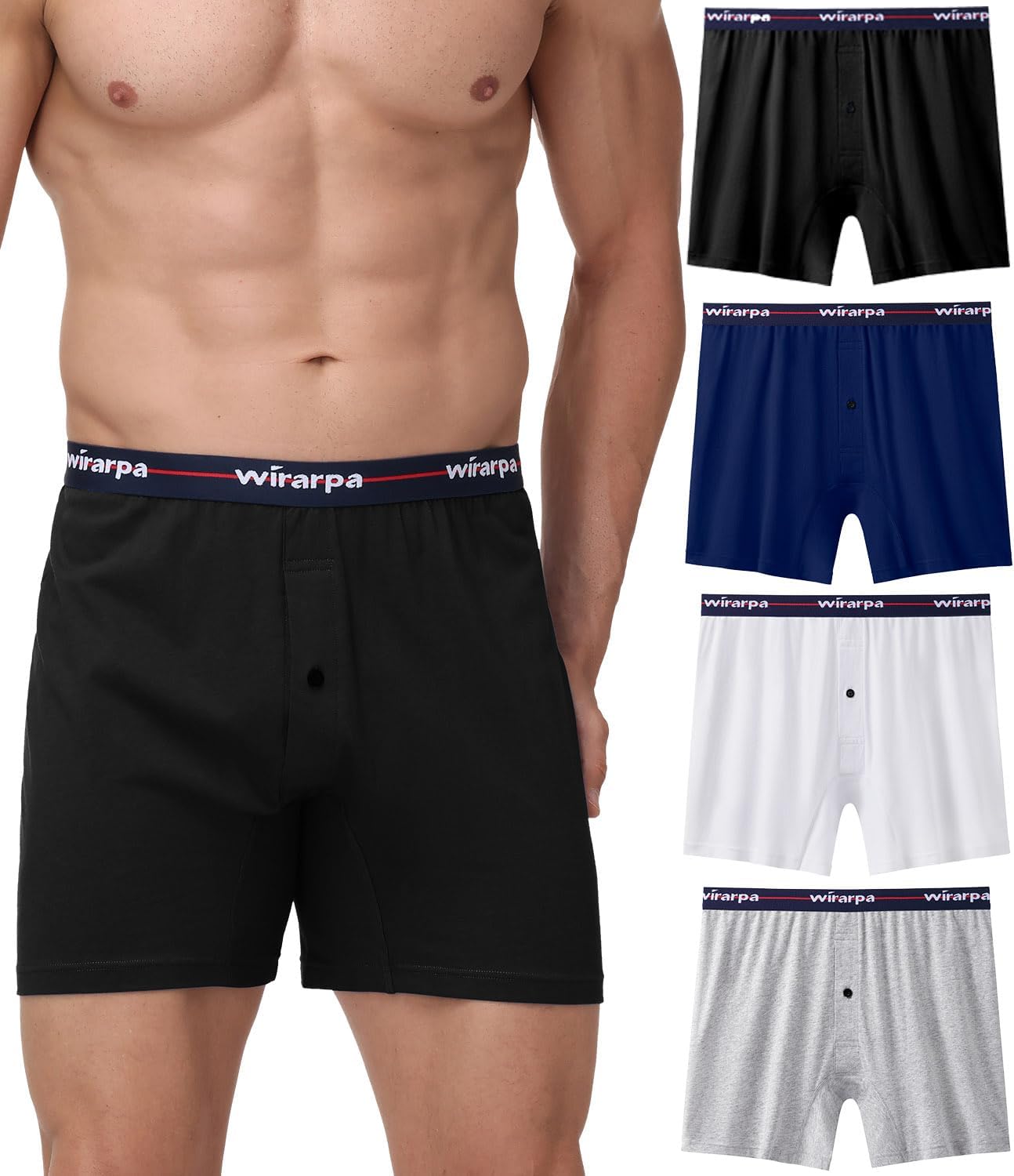 wirarpa Men's Loose Boxer Briefs 100 Cotton Boxer Shorts Underwear Button Fly 4 Pack