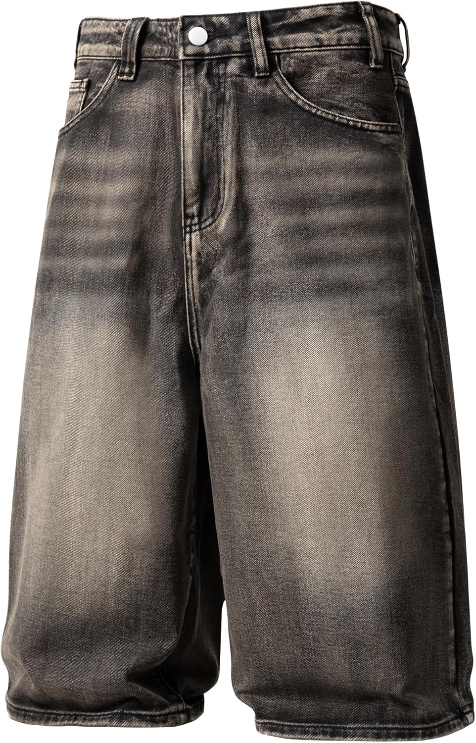 Vamtac Mens Baggy Jean Shorts Y2K Washed Long Denim Shorts Casual Loose Fit Streetwear Jorts