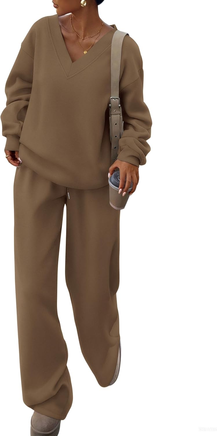 PRETTYGARDEN Casual Winter Two Piece Sets for Women 2026 V Neck Sweatshirt Loose Wide Leg Pants Tracksuit Knit Fall Outfits