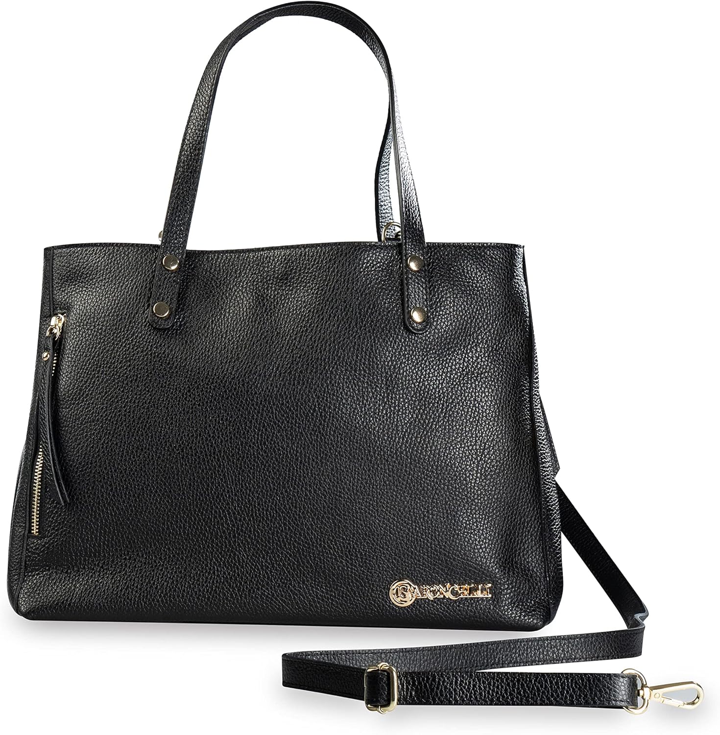 Baroncelli Large Leather Tote Bag Genuine Italian Pebbled Leather Designed and Made in Italy