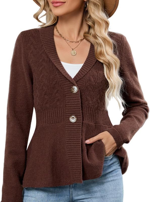 ZAFUL Womens Peplum Cardigan Fall Button Down Knit Long Sleeve Open Front Textured Crochet Shawl Lapel Sweater Trendy 2026