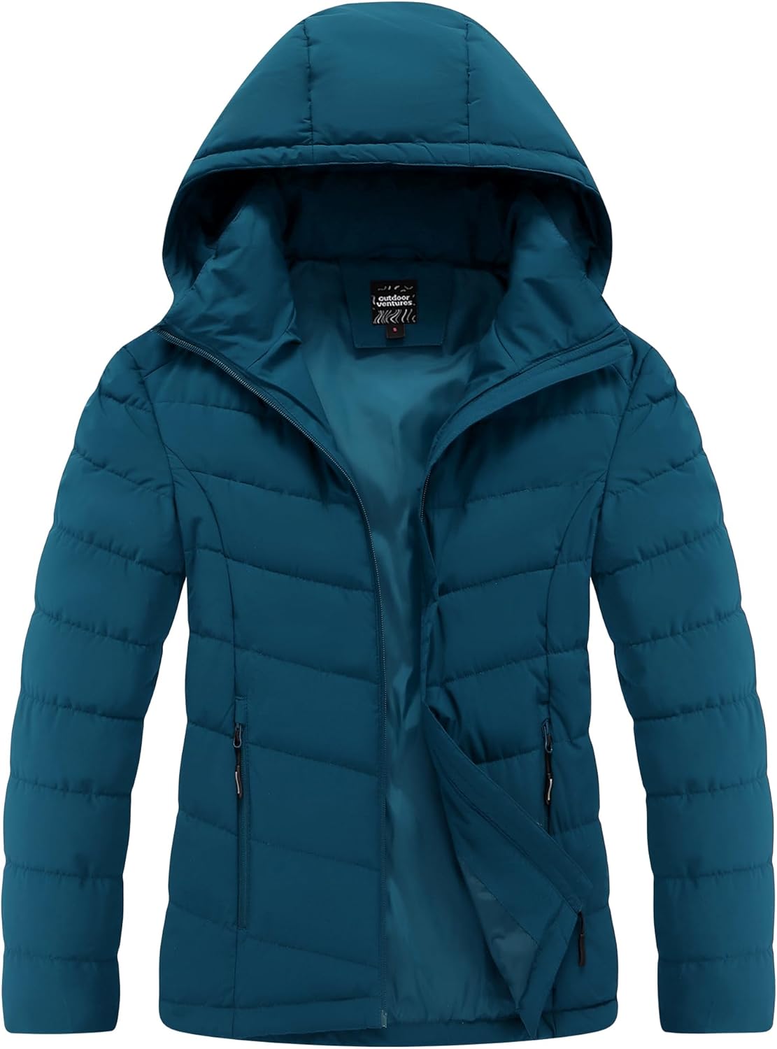 Outdoor Ventures Women's Hooded Puffer Jacket Waterproof Lightweight Full-Zip Warm Quilted Winter Coat