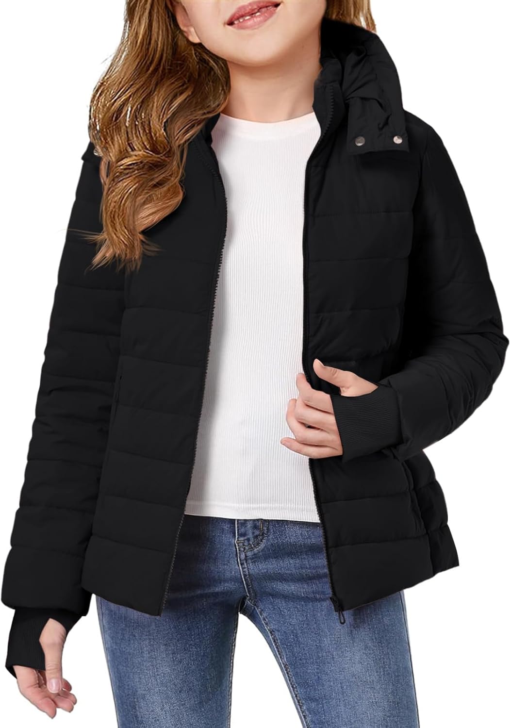 Haloumoning Girls Hooded Puffer Jacket Kids Winter Quilted Down Coats with Zipper Pockets 5-14 Years