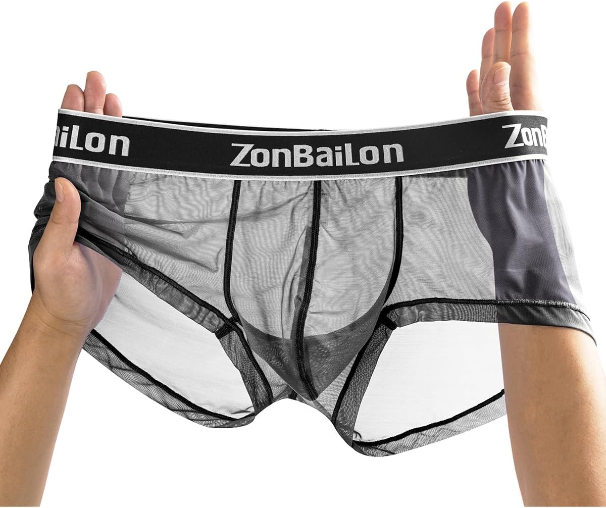 ZONBAILON Mens Sexy Underwear See Through Super Thin Breathable Mesh Boxer Briefs Stretchy M L XL 2XL 3XL