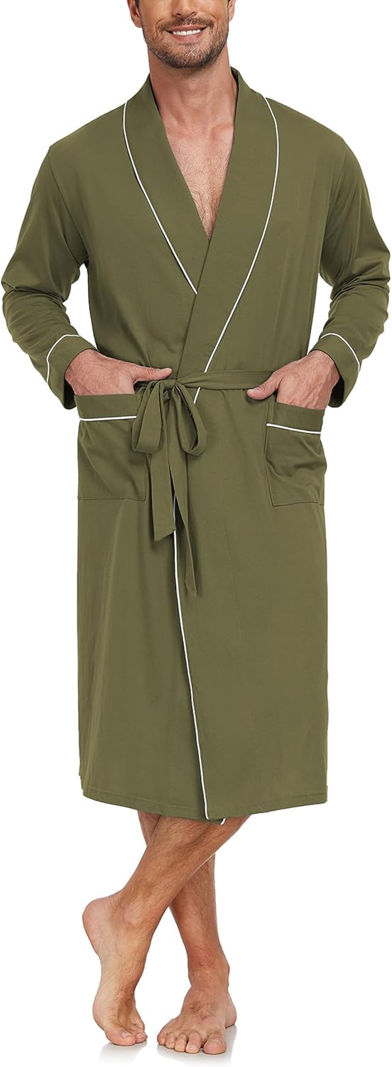 EA'S SECRET Men's 100% Cotton Robes Lightweight Long Sleeve Kimono Bathrobe Soft Over the Knee Sleepwear
