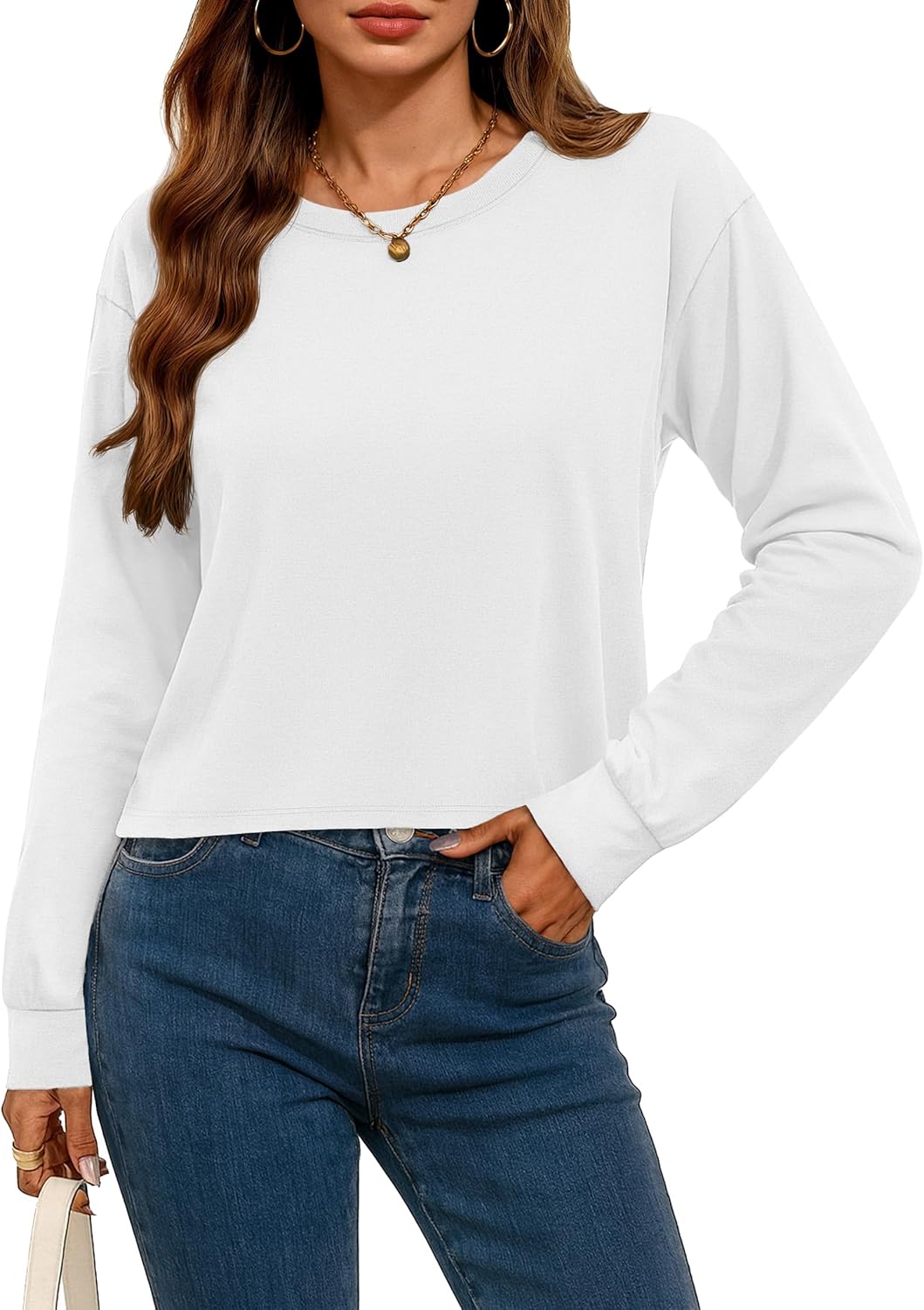 YUCOLEN Long Sleeve Crop Tops for Women Loose Fit Cropped T Shirts Casual Crewneck Boxy Tees
