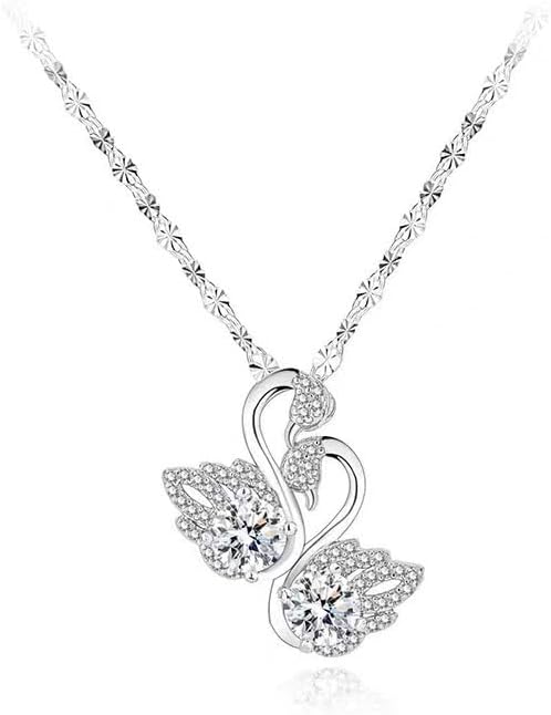 18K Gold Plated Elegant Double Swan Necklace with Cubic Zirconia – Silver-Tone Love Bird Pendant Jewelry for Women