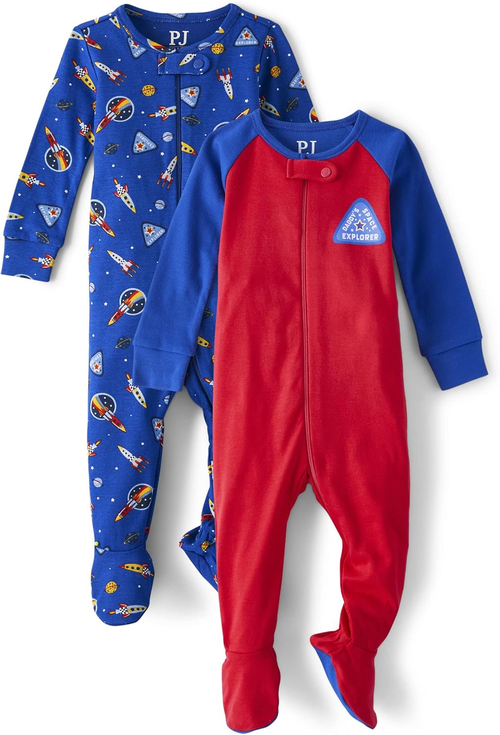 The Children's Place boys Long Sleeve 100% Cotton Zip-front One Piece Footed Pajamas
