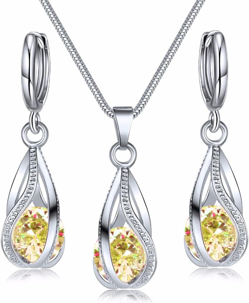 IFKM Silver Jewelry Sets for Women Rhinestone Crystal CZ Bridal Bridesmaid Accessories Necklace Earrings set for Wedding Prom Anniversary Birthday Gifts