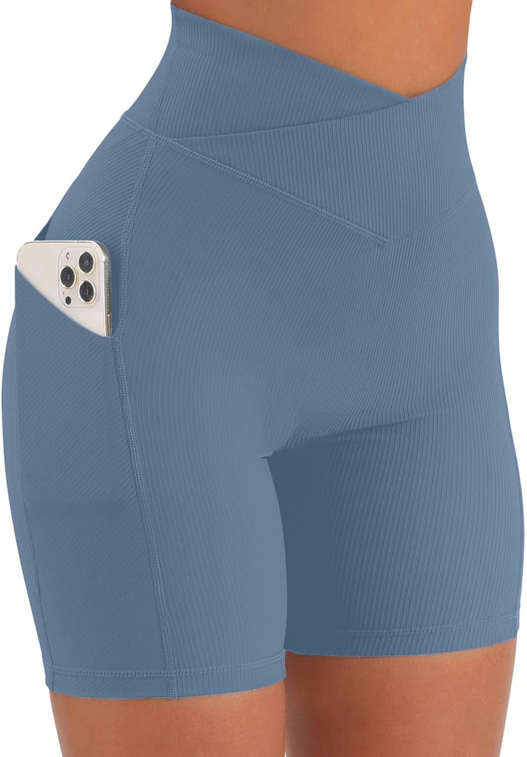 Yuerlian Women Seamless Booty Biker Shorts Cross Workout Shorts 5" High Waisted Shorts with Pockets