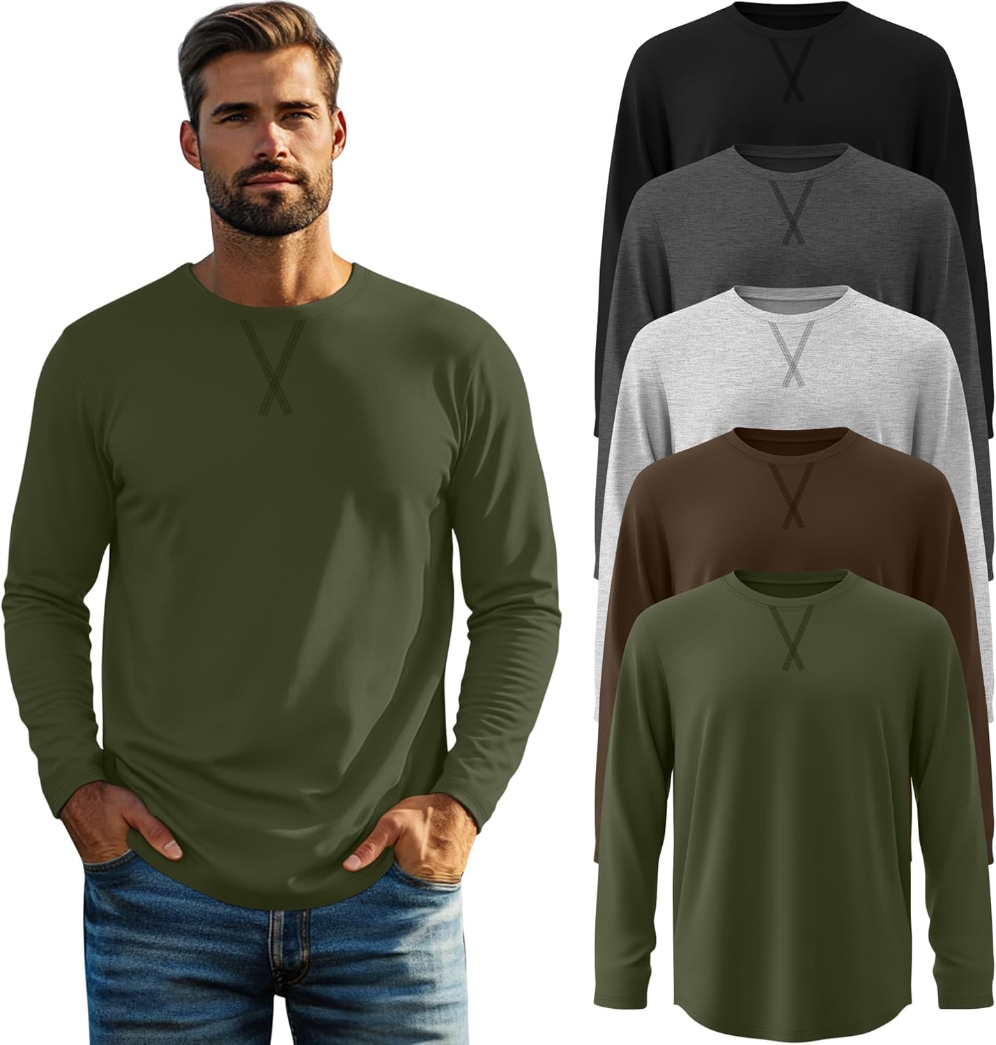 5 Pack Men's Big and Tall Long Sleeve Shirts Crewneck Tops L-7xl Hipster Hip Hop Longline T-Shirts Multipack