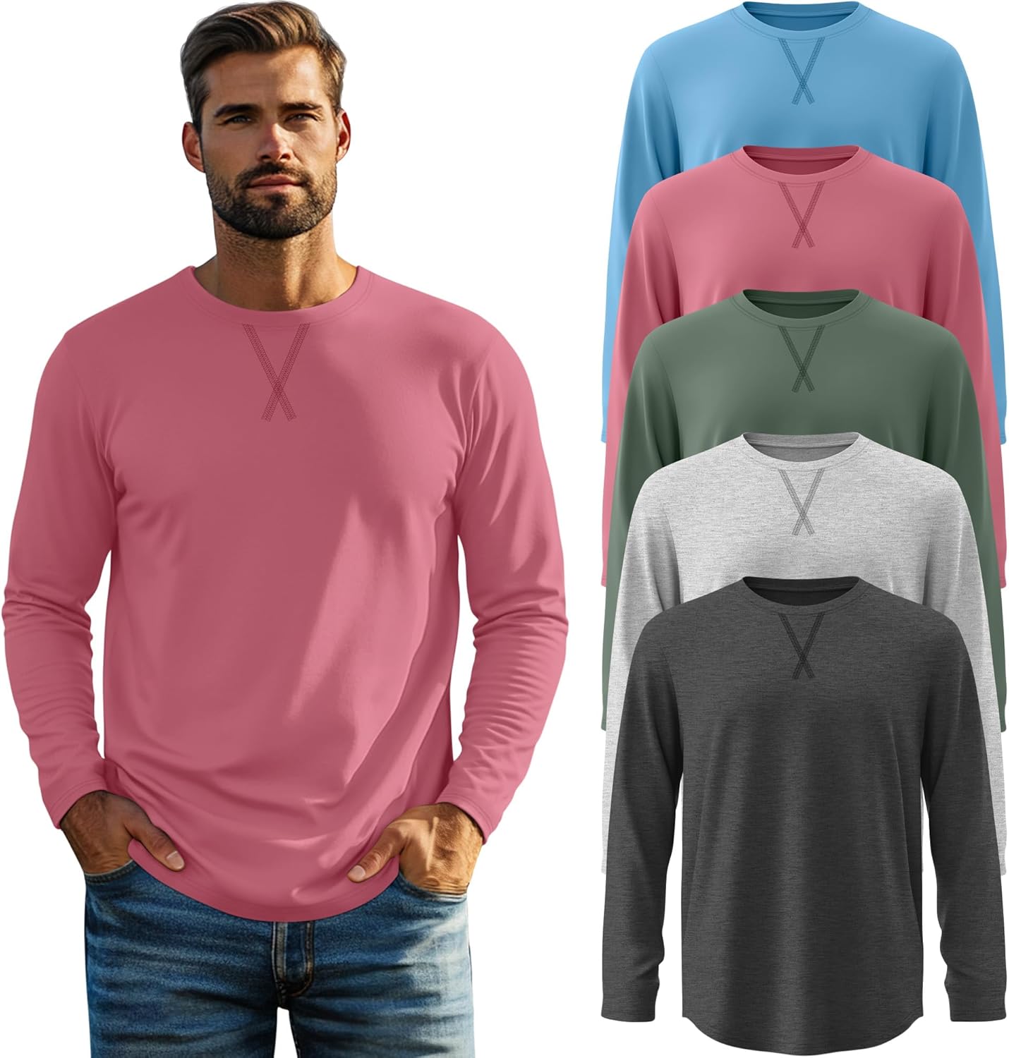 5 Pack Men's Big and Tall Long Sleeve Shirts Crewneck Tops L-7xl Hipster Hip Hop Longline T-Shirts Multipack