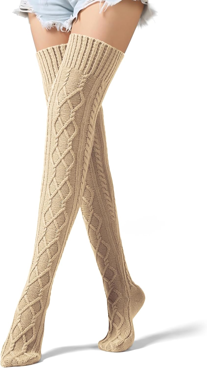 VIBILIA Thigh High Socks Cable Knit Winter Boot Socks Over the Knee Extra Long Non-Slip Leg Warmers for women - Black