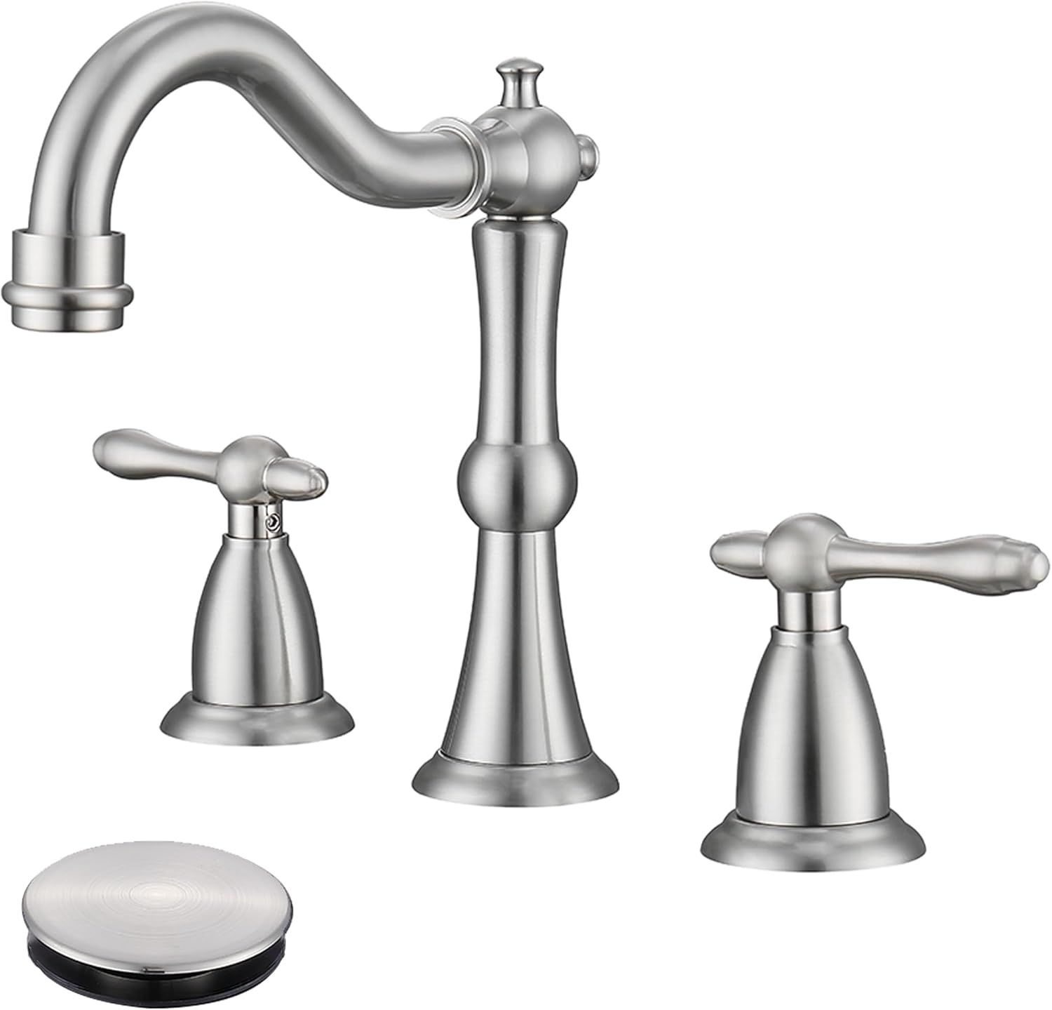 - *DESIGN* Antique design 3 holes vanity sink faucet with brushed nickel color make your bathroom more luxurious and modern, spotless satin nickel color do not leave watermark and fingerprints.