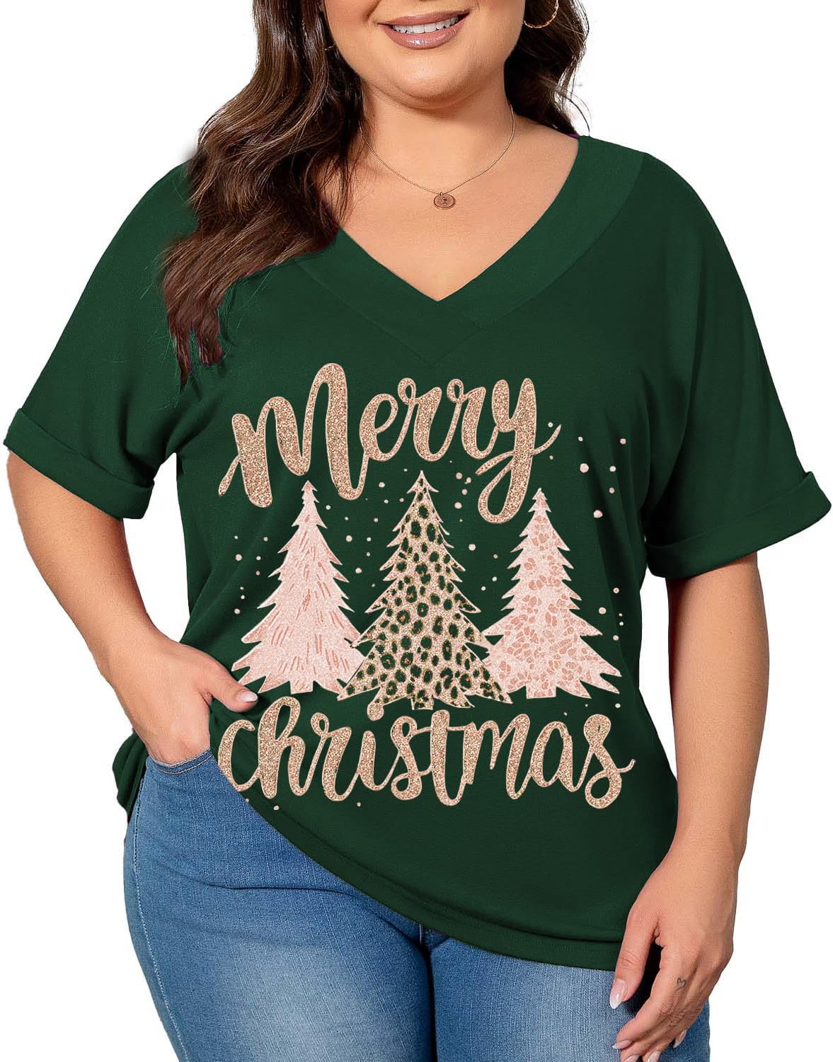 Women's Plus Size Casual V Neck T-Shirt Loose Fit Short Sleeve Blouse Curvy Tunic Top Fashion Clothing
