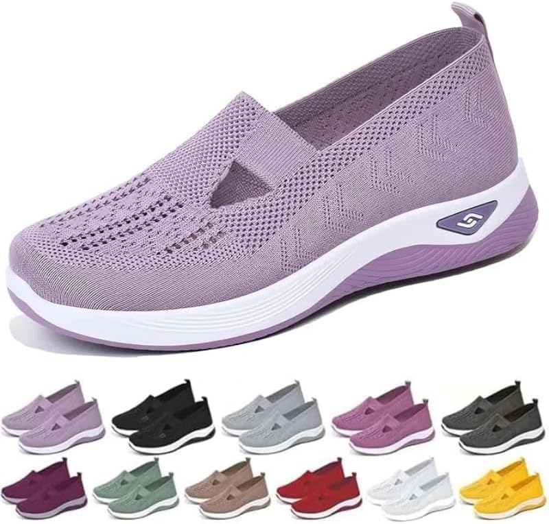 Eynuo Orthopedic Walking Shoes for Women, Womens Woven Orthopedic Breathable Walking Sneaker Non-Slip Arch Support Slip on Shoes Comfortable Ourdoor Shoes