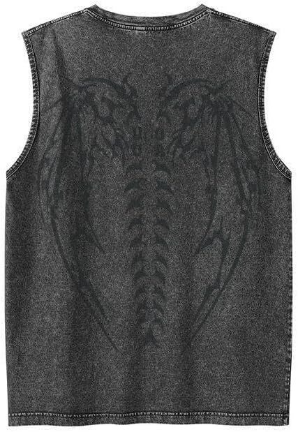 UOUA Men's Graphic Tank Tops Washed Sleeveless Tee Shirts Summer Vintage Cotton Streetwear (S-2XL)