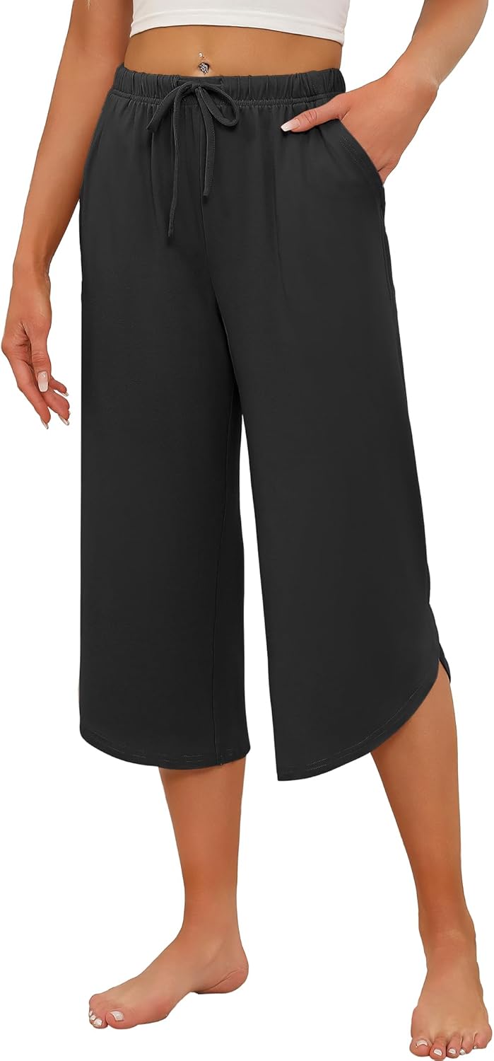 Ekouaer Womens Pajama Pants Capri 2026 Wide Leg Lounge Pj Pants Summer Comfy Drawstring Pajama Bottoms with Pockets