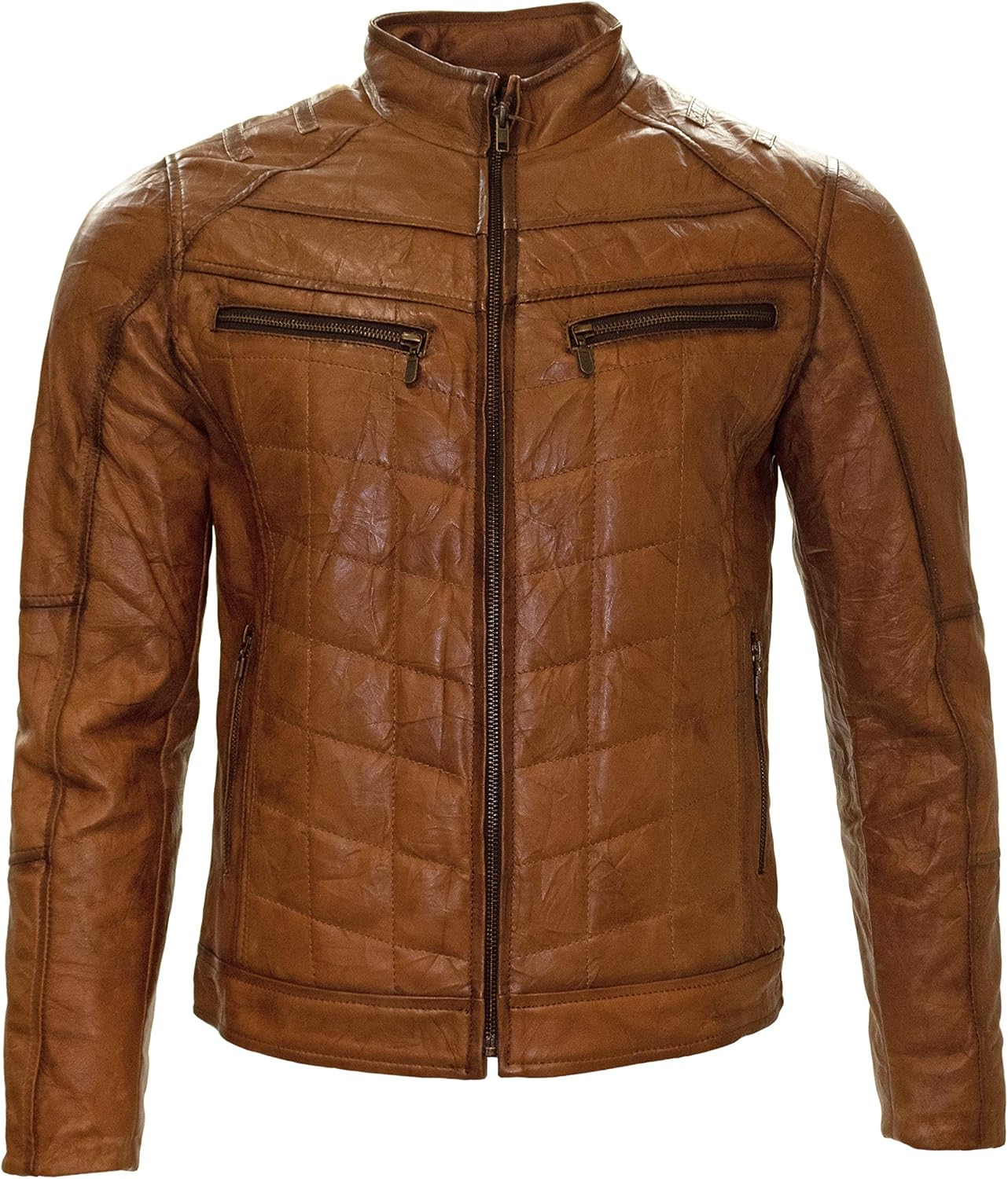 White Diamonds Men's Leather Jacket Color Honey Western Style Full Zipper
