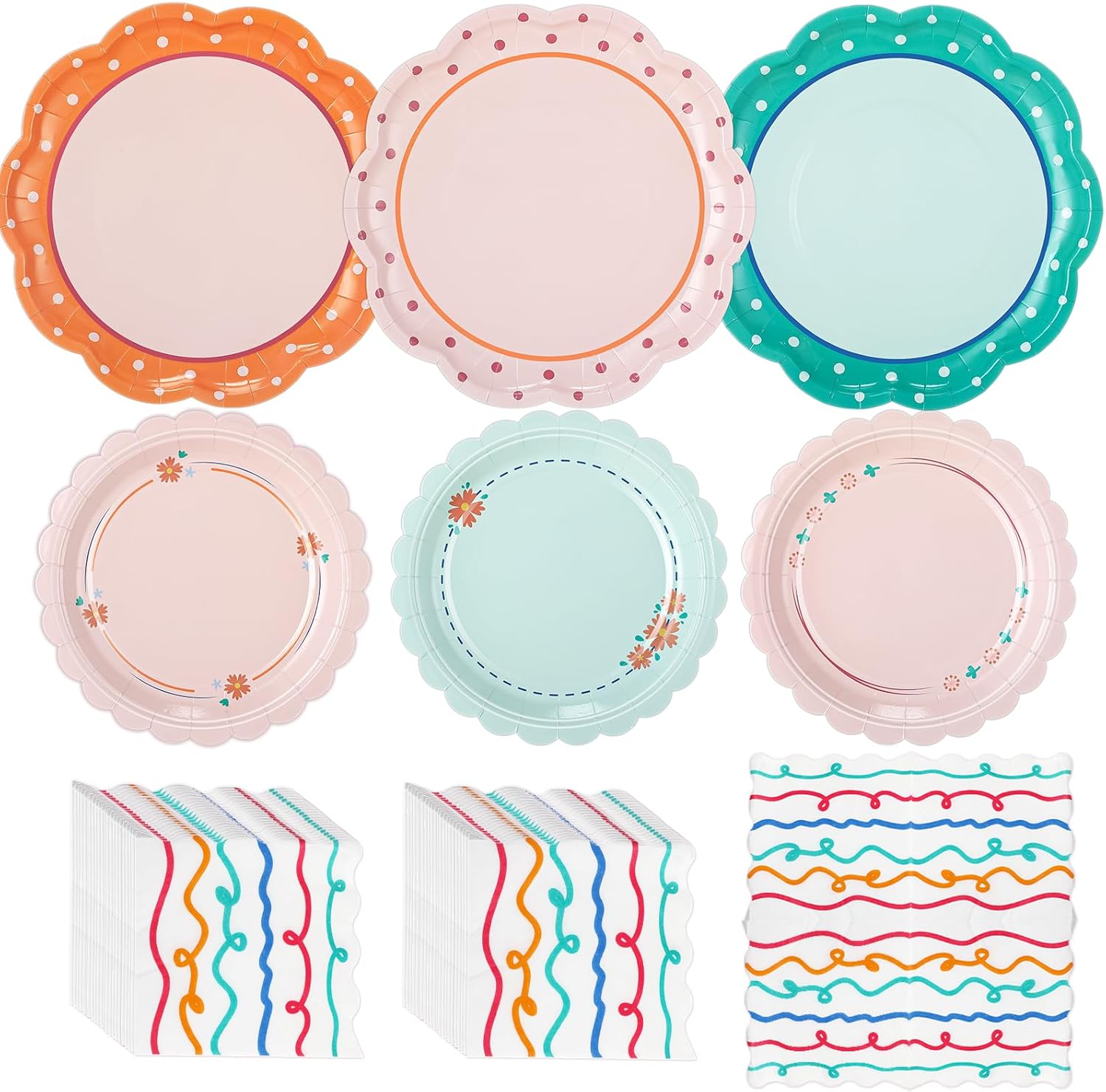 - Colorful Italian Summer Decorations: our scalloped paper plates and napkins sets are disposable, saving you from the tedious task of washing dishes post party; Instead, you will have more time and energy to engage with your visiting friends or family; Moreover, the combined ease of use and clean up renders our plates incredibly user friendly