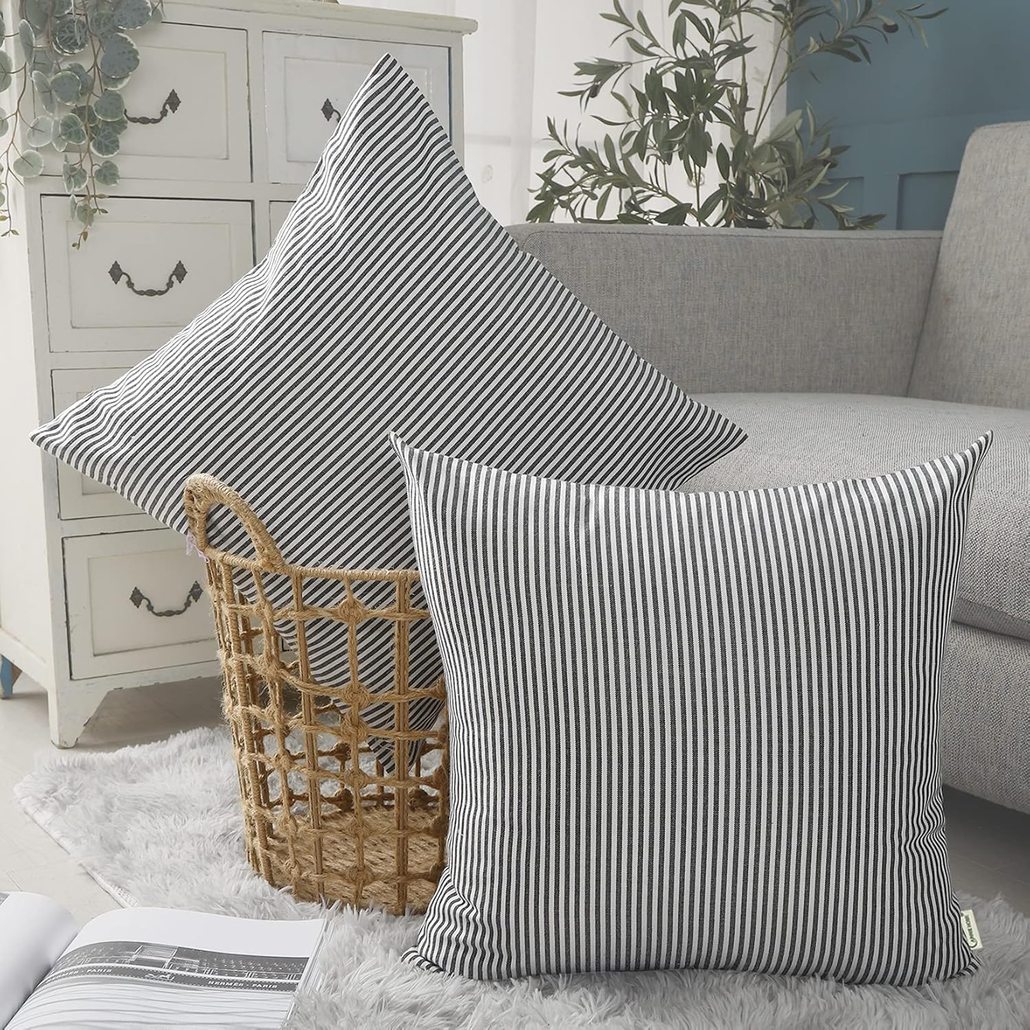 - ★Black Pinstripe Design★ The double-sided black farmhouse striped pillow covers are perfect for decorating living room, bedroom, patio furniture, porch Swing, balcony, car, office and etc. They can fresh your home in a moment, which is easy to mix and match with other farmhouse and Christmas room decor.