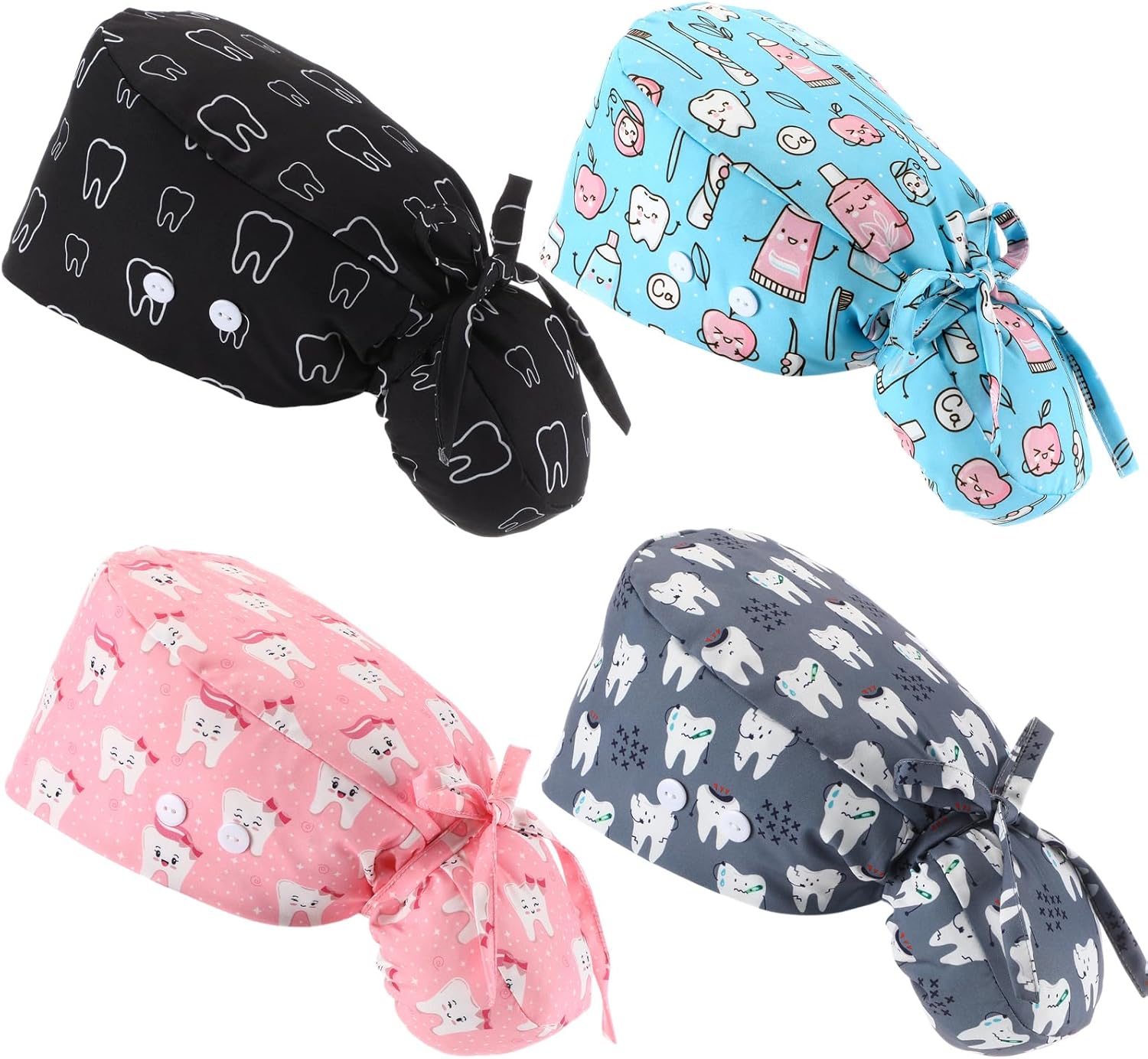 Unittype 4 Pcs Nurse Caps for Women Nursing Working Caps with Button and Sweatband Adjustable Elastic Scrub Hats for Dentist
