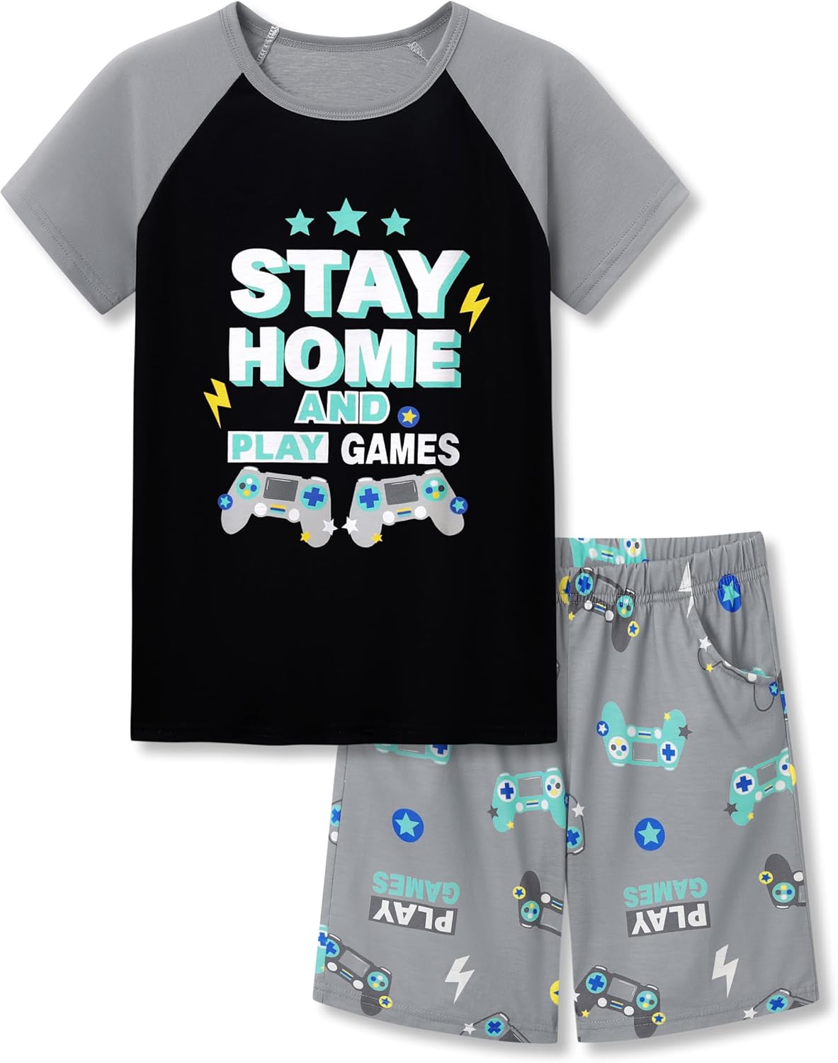Tebbis Pajamas For Boys Fun Baseball Navy Blue Short Sleeves 2-Piece PJs Set Kid Comfy Sleepwear Size 6-18