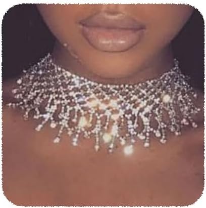 YERTTER Dainity Full Rhinestone Chunky Chain Chain Collar Statement Tassel Crystal Choker Necklace Adjustable for Party Music Bar Women
