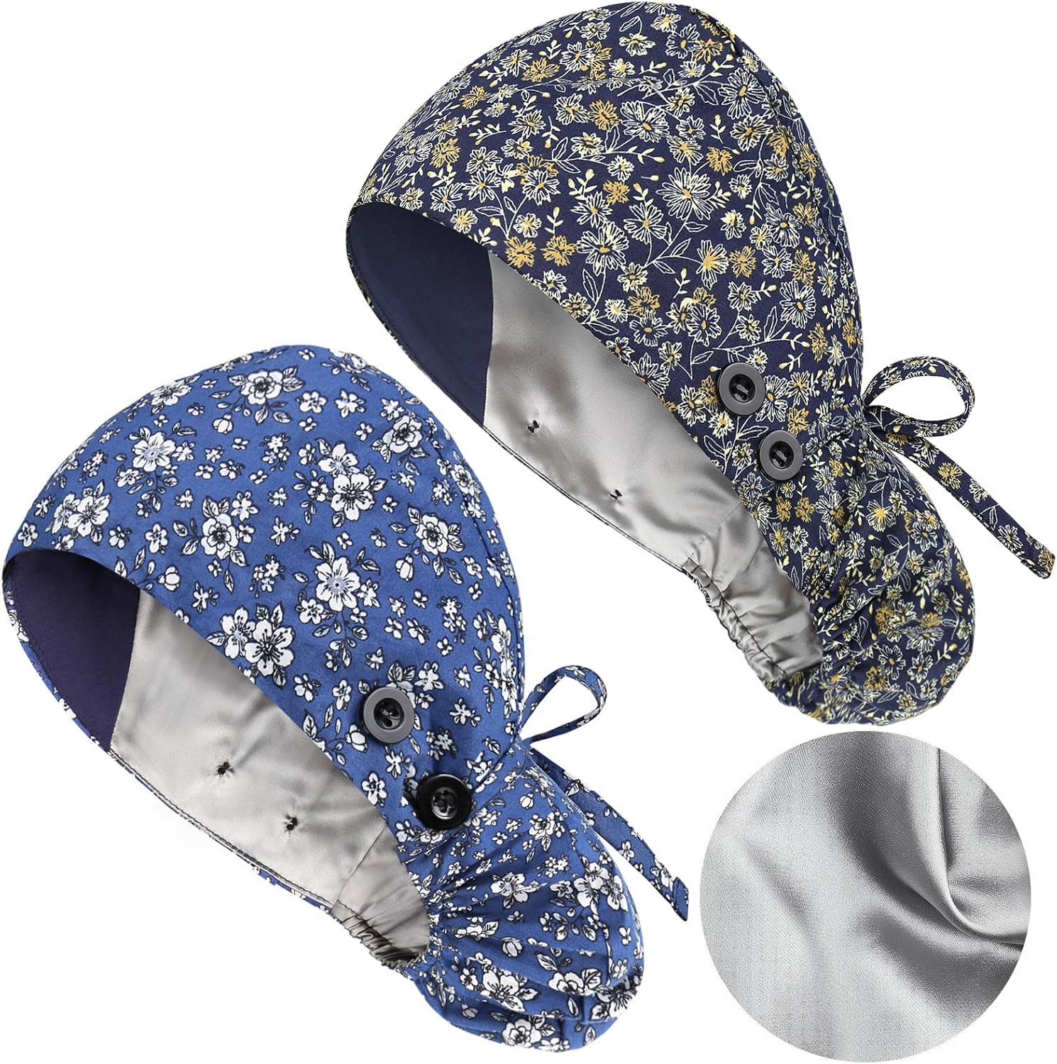 Satin Lined Scrub Caps with Buttons & Sweathand, Surgical Caps for Women