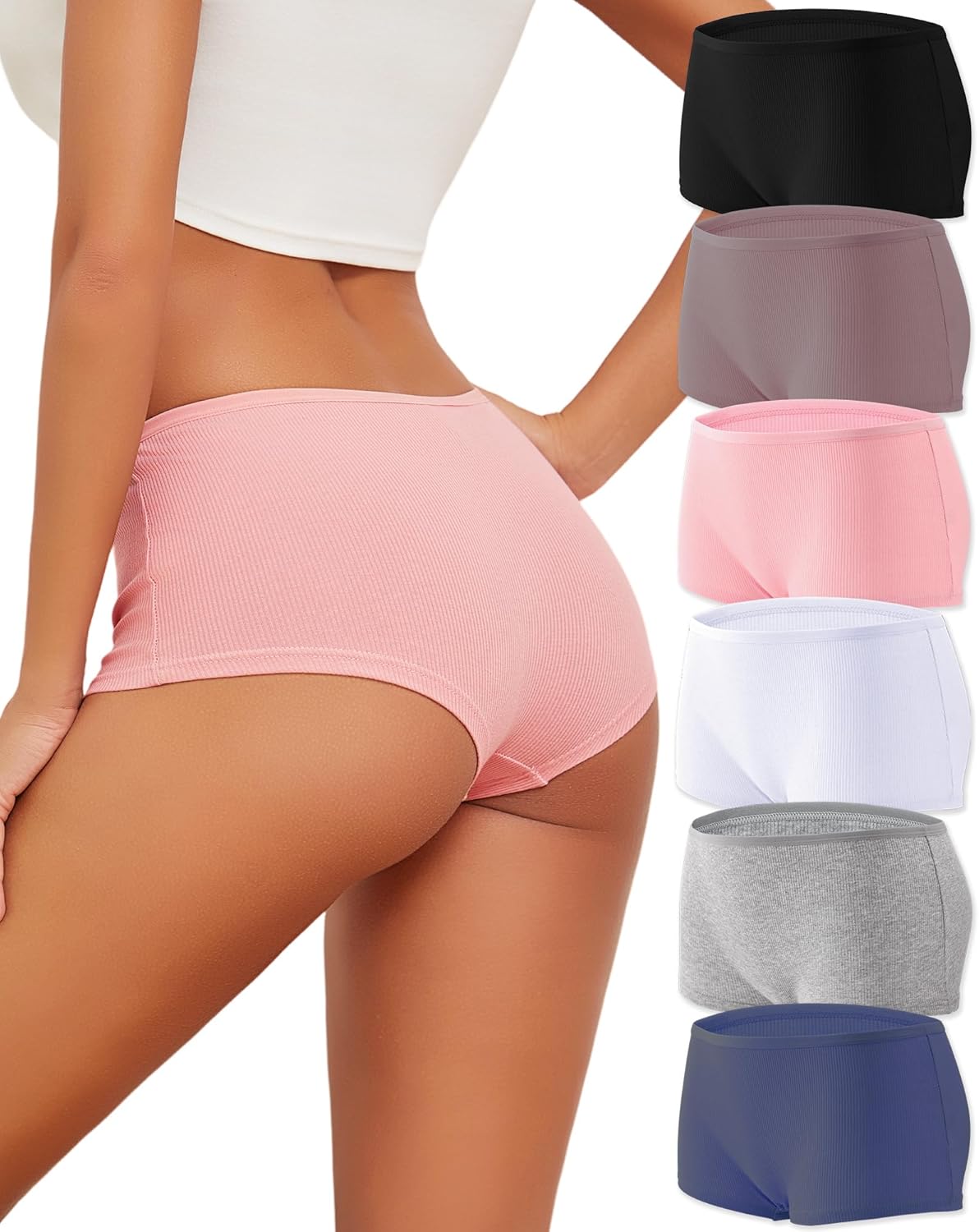 ALL OF ME Cotton Underwear for Women Boyshort Panties Full Coverage Boxer Briefs Stretch Boy Short Undies 6 Pack