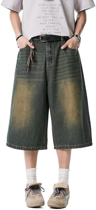 Men's Wide Leg Vintage Denim Shorts with Elastic Waistband Y2K Harajuku Fashion Loose Baggy Grunge Denim Bottoms