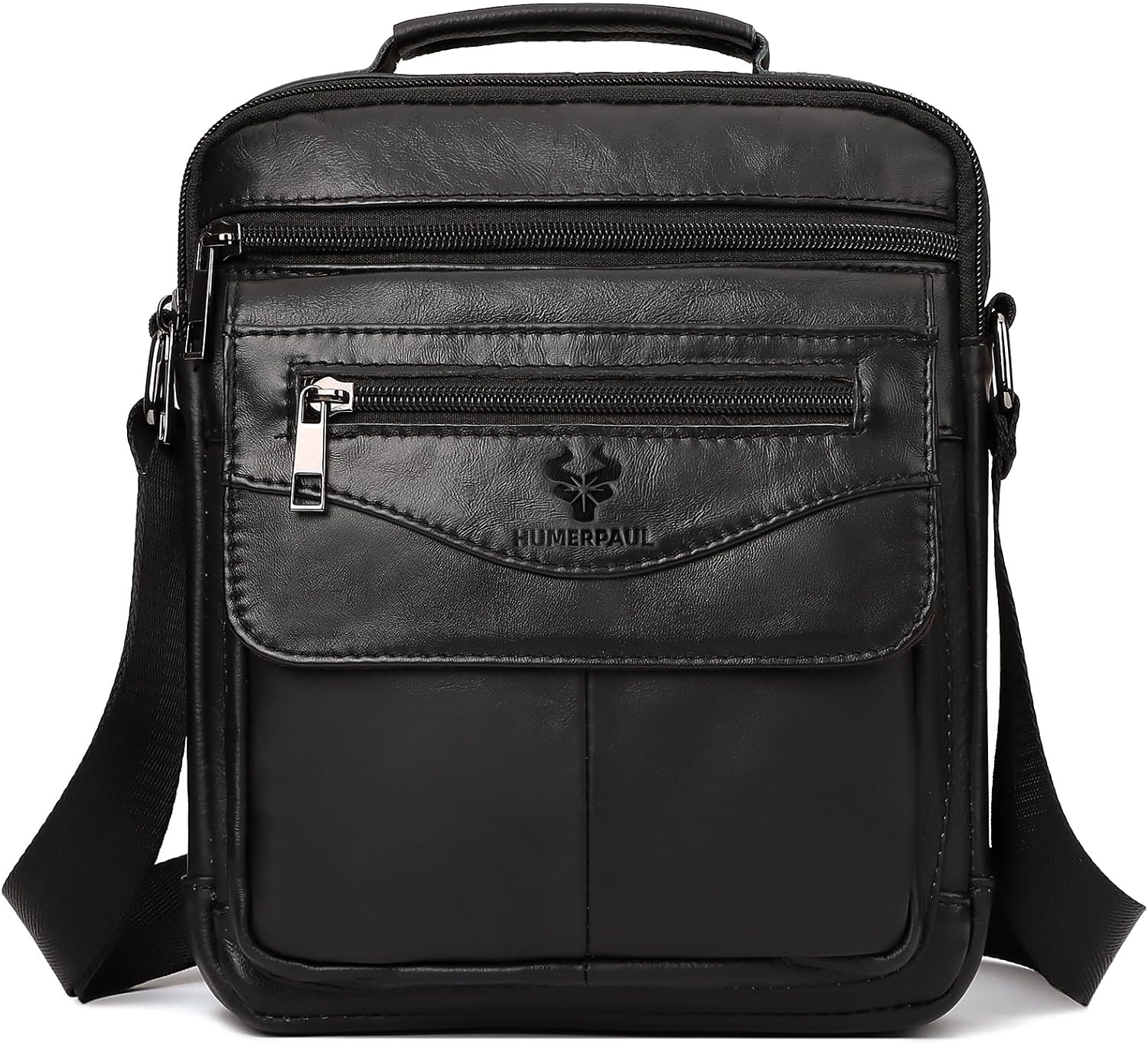 Small Messenger Bag for Men Sling Crossbody Shoulder Bag Genuine Leather Handbag Man Purse for Work Business