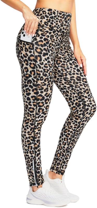 SANTINY Women's Fleece Lined Winter Leggings Water Resistant High Waisted Thermal Hiking Running Warm Pants Women Pockets(Leopard_XXL)