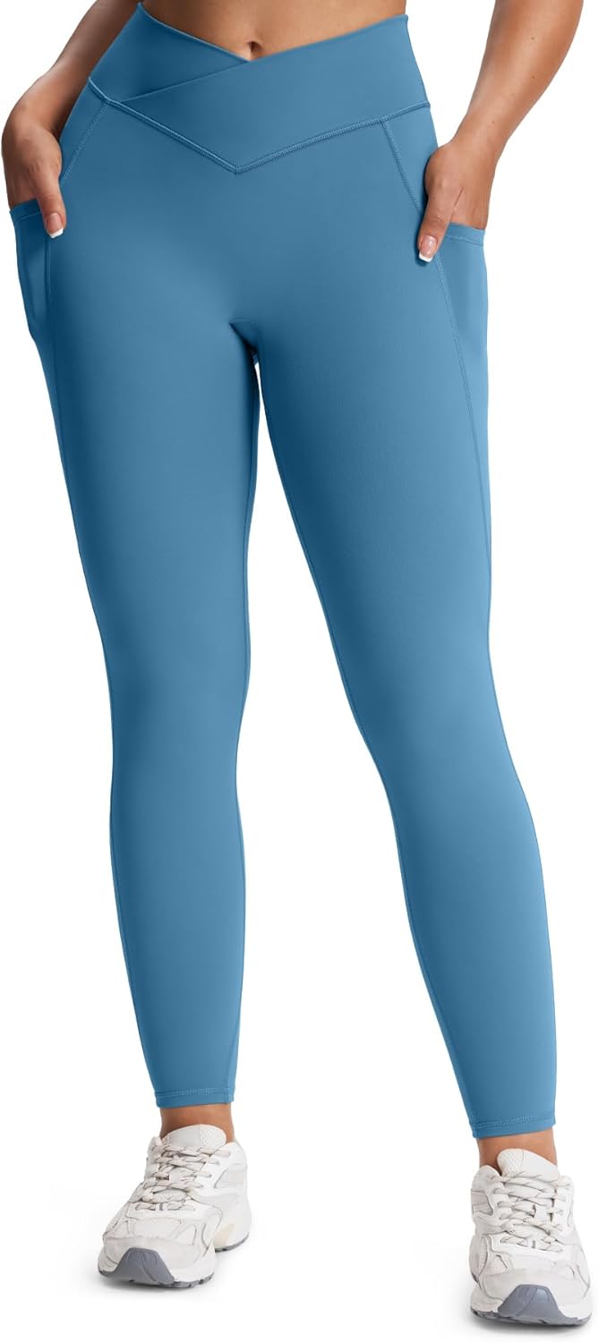 Aoxjox Women's Trinity High Waisted Yoga Pants with Pockets Cross-waist Tummy Control Buttery Soft Workout Leggings 26"