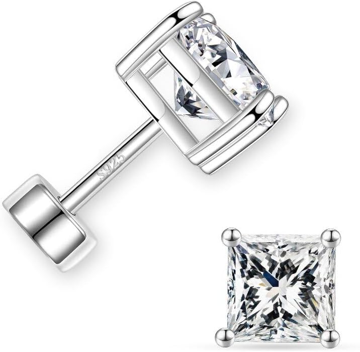 MOOSEA 0.2-2ct Moissanite Flat Back Earrings, Moissanite Earrings Screw Back, 925 Sterling Silver Earring for Women Men