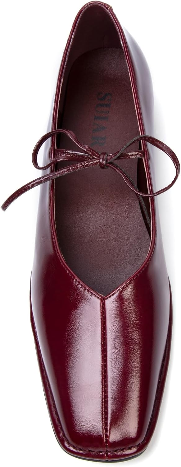 Lace up Ballet Flats Women Square Toe Mary Jane Flats Bow Slip On Comfortable Ballerina Shoes