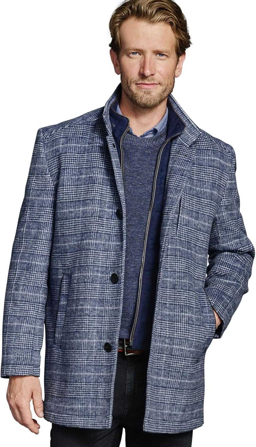 Johnston & Murphy Wool Car Coat with Bib Navy Plaid MD