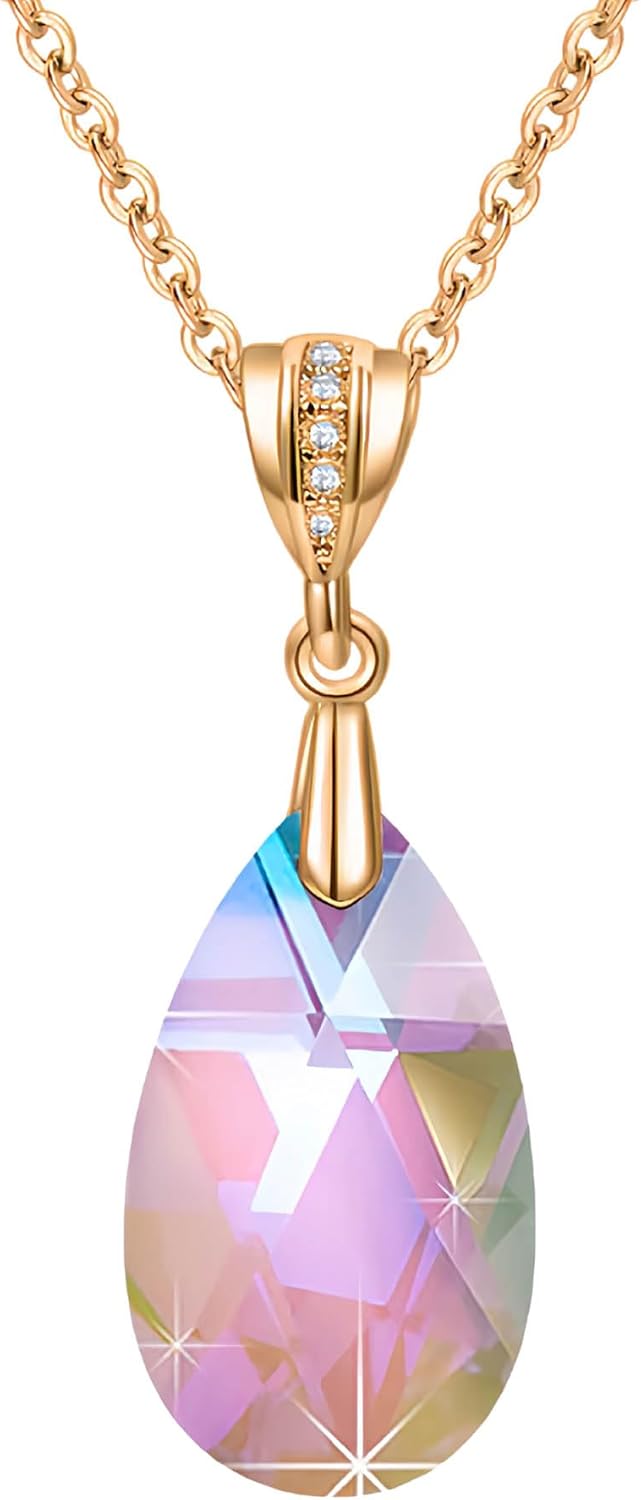 Austrian Crystals Teardrop Pendant Necklace for Women 14K Gold Plated Eco-friendly Brass Hypoallergenic Jewelry
