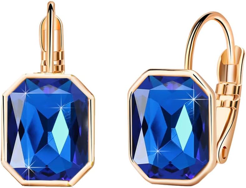 Austrian Crystal Octagon Leverback Drop Earrings for Women 14K Rose Gold Plated Hypoallergenic Jewelry