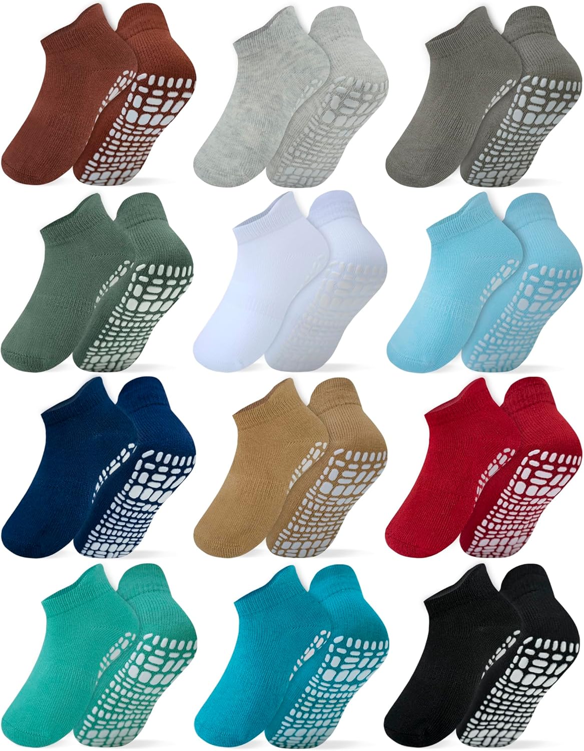 RATIVE Anti Slip Toddler Ankle Socks with Grips Non Skid Cotton Baby Socks for Boys & Girls