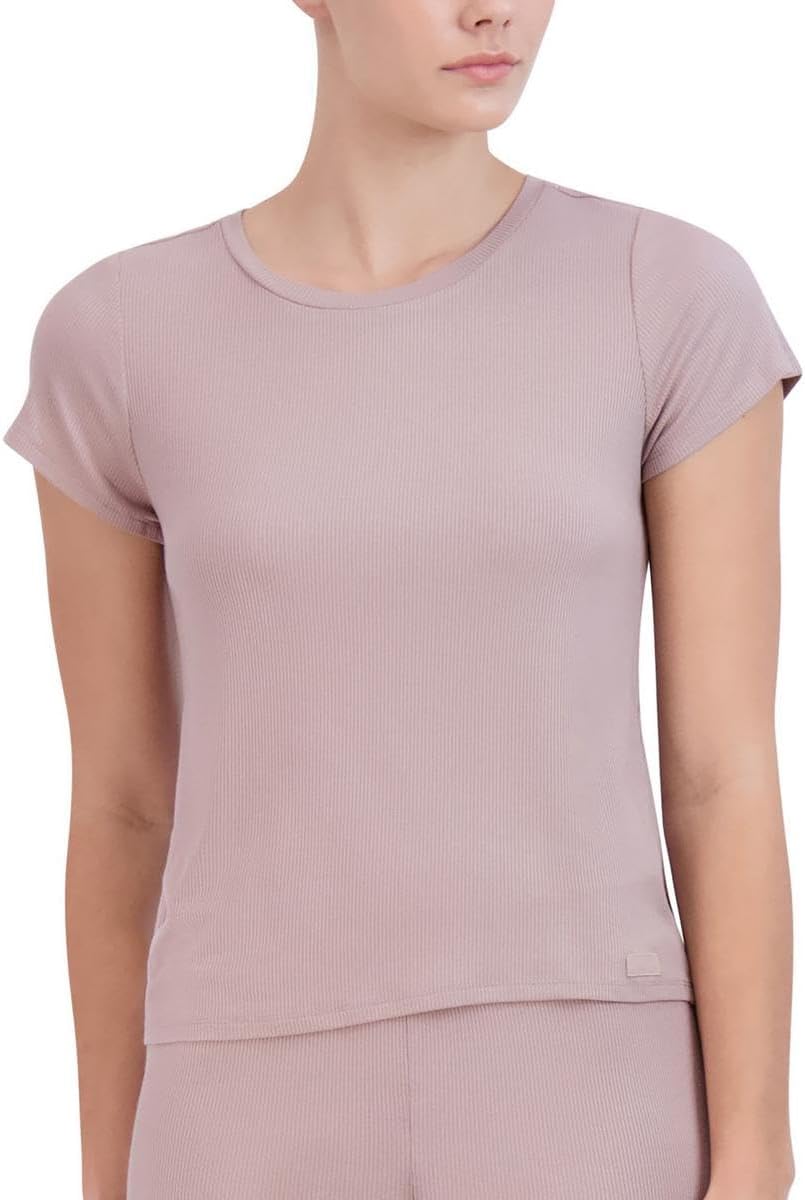 Steve Madden Womens Women's Ribbed Short-Sleeve Sleep Tee
