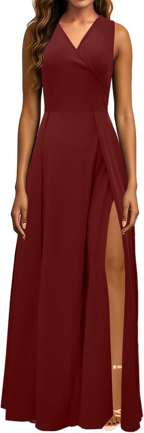Formal Dress for Women Elegant V Neck Sleeveless Sexy High Split Evening Party Cocktail Prom Long Dresses