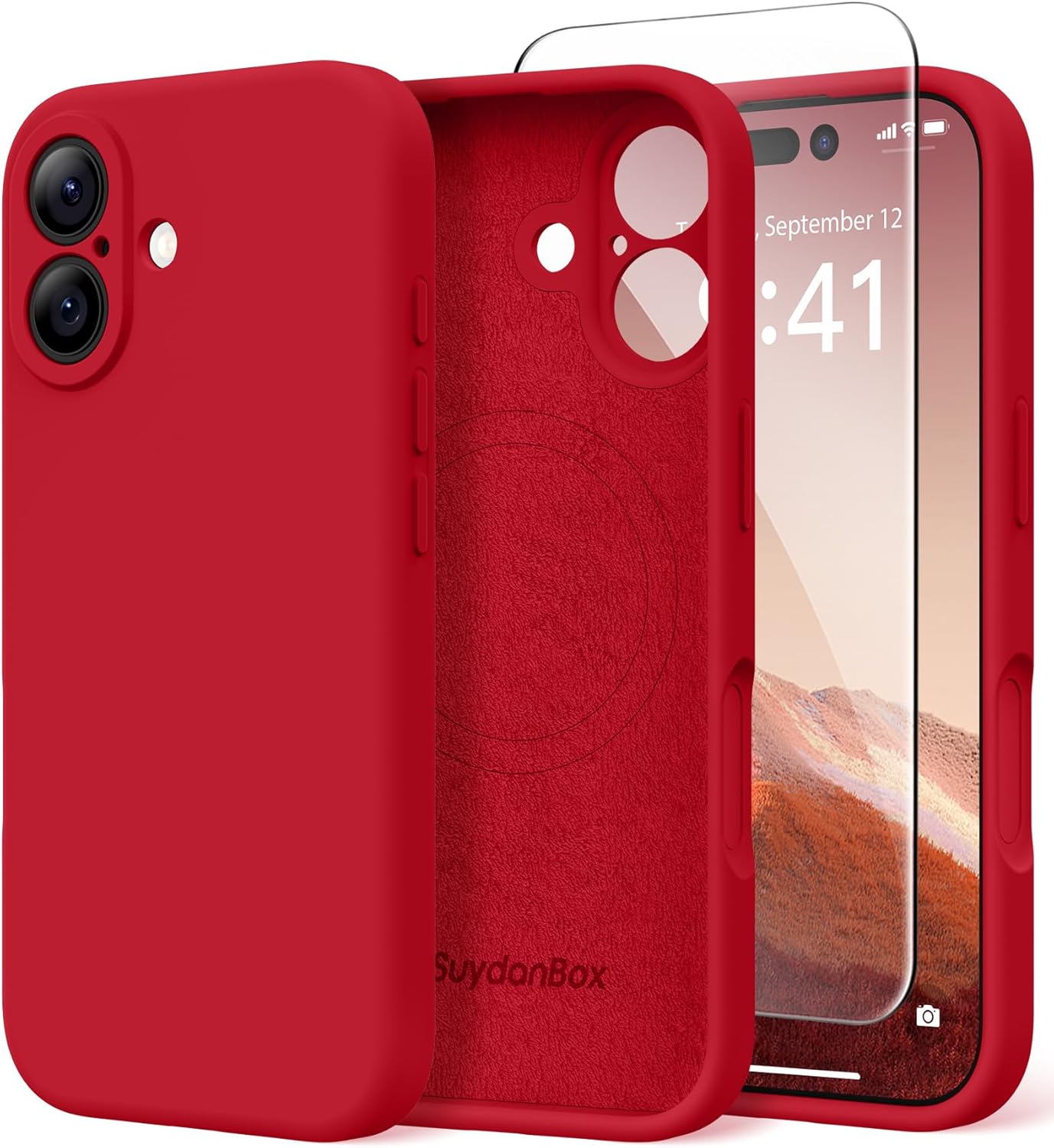 ![Magnetic for iPhone 16 Case, Compatible with MagSafe, [Screen Protector + Full Camera Protection], Silicone Shockproof Anti-Scratch Protective Phone Case for iPhone 16 6.1", Deep Red - Image 2](https://m.media-amazon.com/images/I/71M4sj6q0mL._AC_SL1500_.jpg)