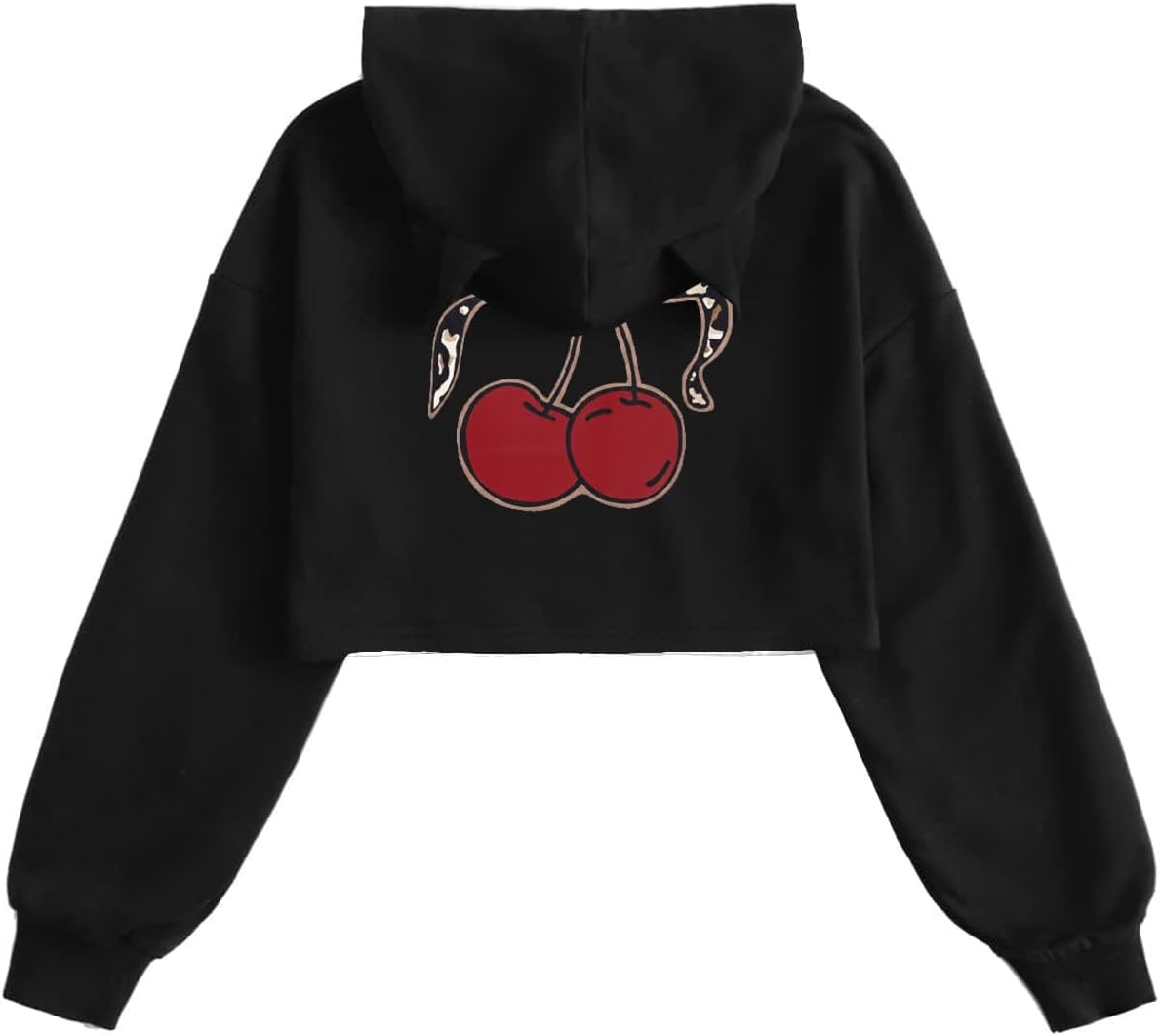 WDIRARA Girl's Cute Cat Ear Crop Tops Long Sleeve Causal Plain Hoodie Sweatshirt Shirt