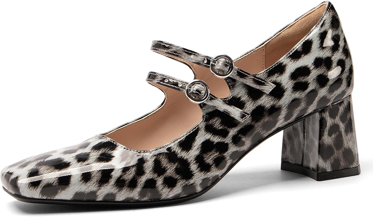 NEWBELLA Women's Mary Jane Pumps - Vintage Patent Leather Dress Shoes with Double Strap, Round Toe & 2" Chunky Heel for Office/Wedding