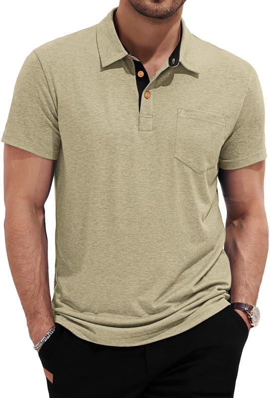 Mens Polo Shirts Short Sleeve Cotton Casual Summer Knit Golf Stylish T Shirts with Pockets