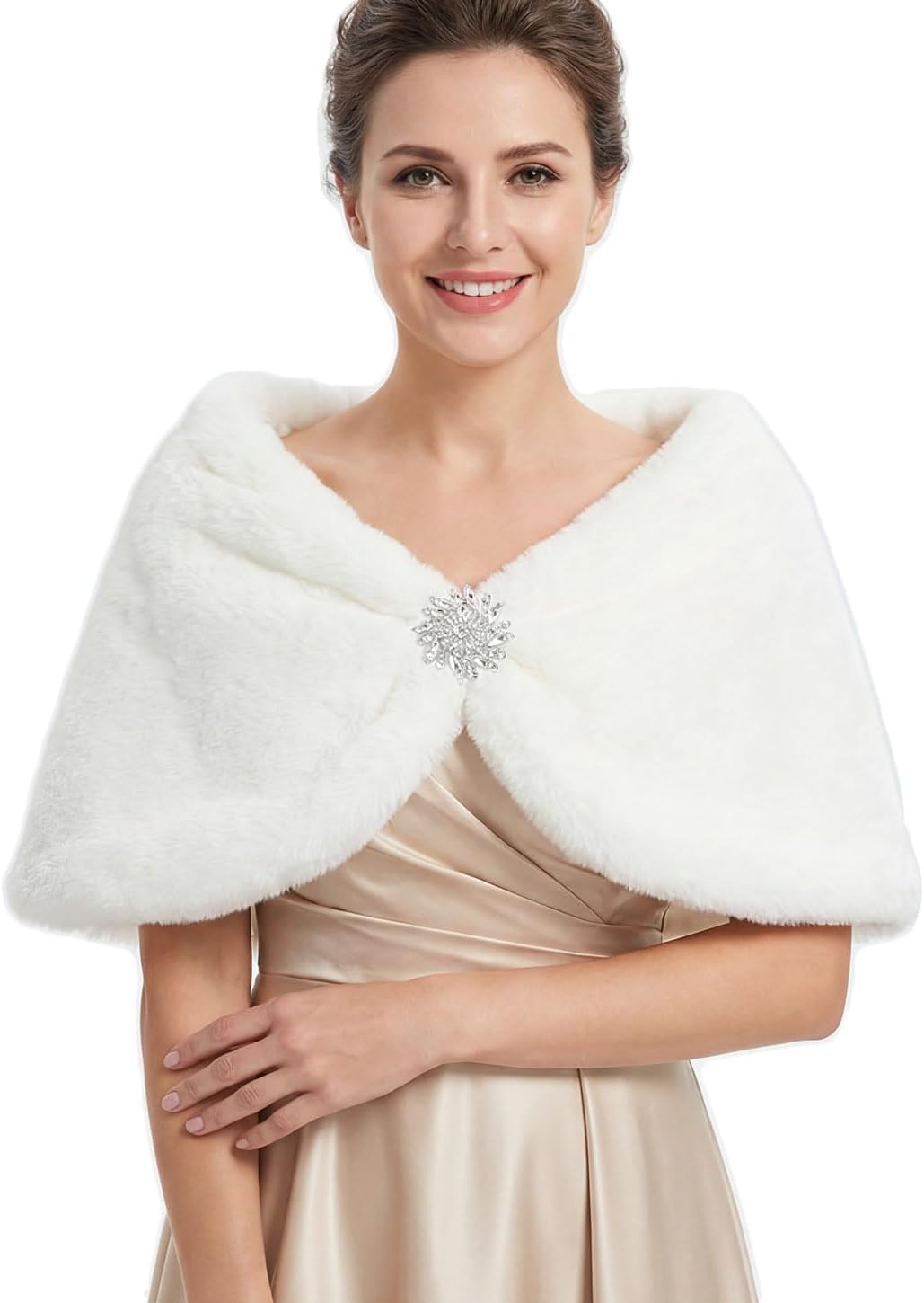 TWINKLEDE White Faux Fur Shawl Stole Scarfs Wedding Winter Fur Shawls and Wraps for Bridal (US, 2-12)