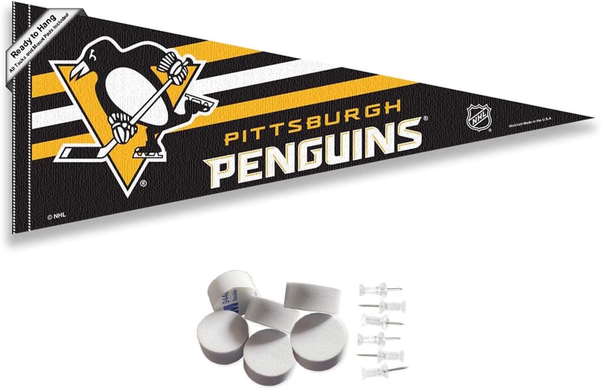 Pittsburgh Penguins Pennant Flag and Wall Tack Pads Mounts