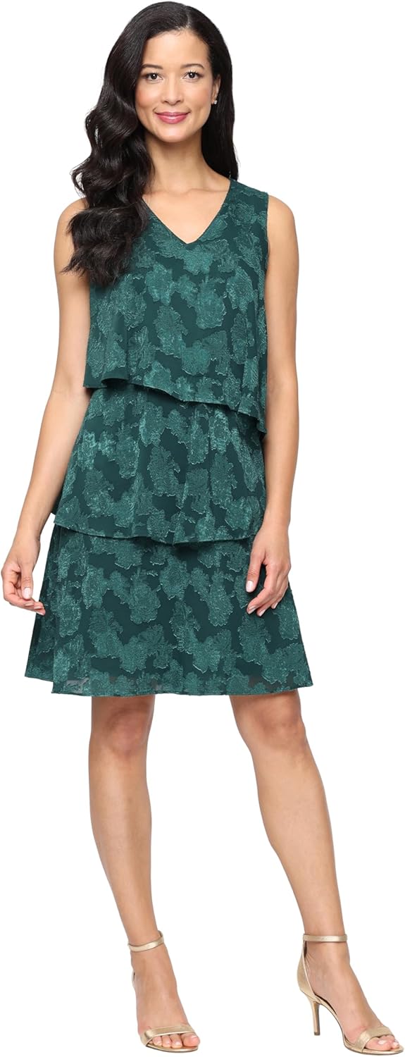 S.L. Fashions Women's Short Sleeveless Burnout Chiffon Asymmetric Tier Dress, Wedding Guest, Party, Casual