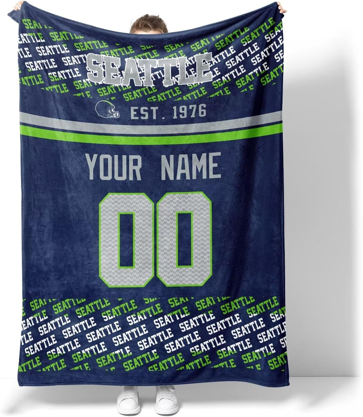ANTKING Seattle Throw Blanket Custom Name and Number Blanket for Men Women Boy Gifts